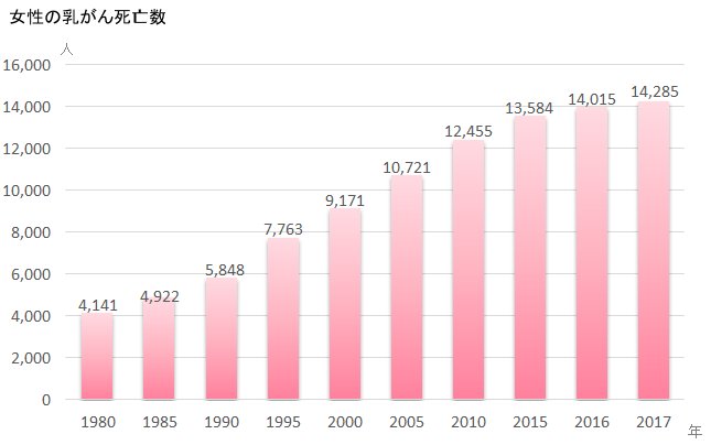 近年、乳がんで亡くなられる方は